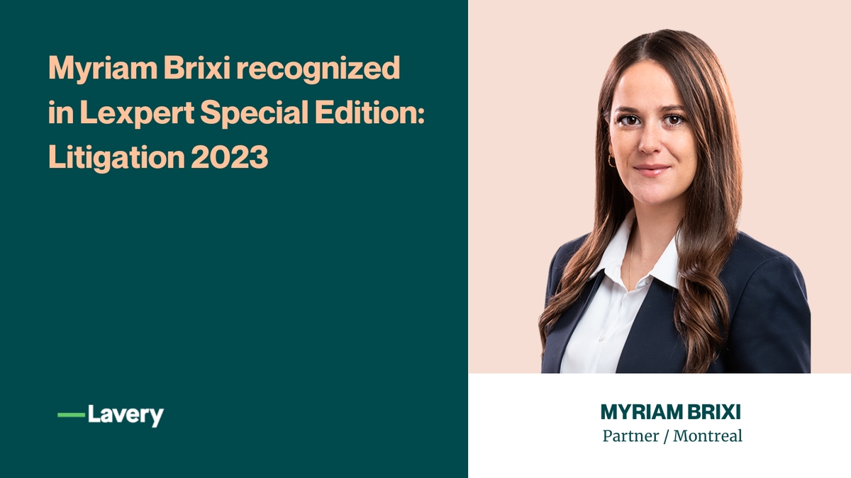 On November 23, 2023, Lexpertrecognized Myriam Brixi’s expertise in its 2023 Special Edition: Litigation.