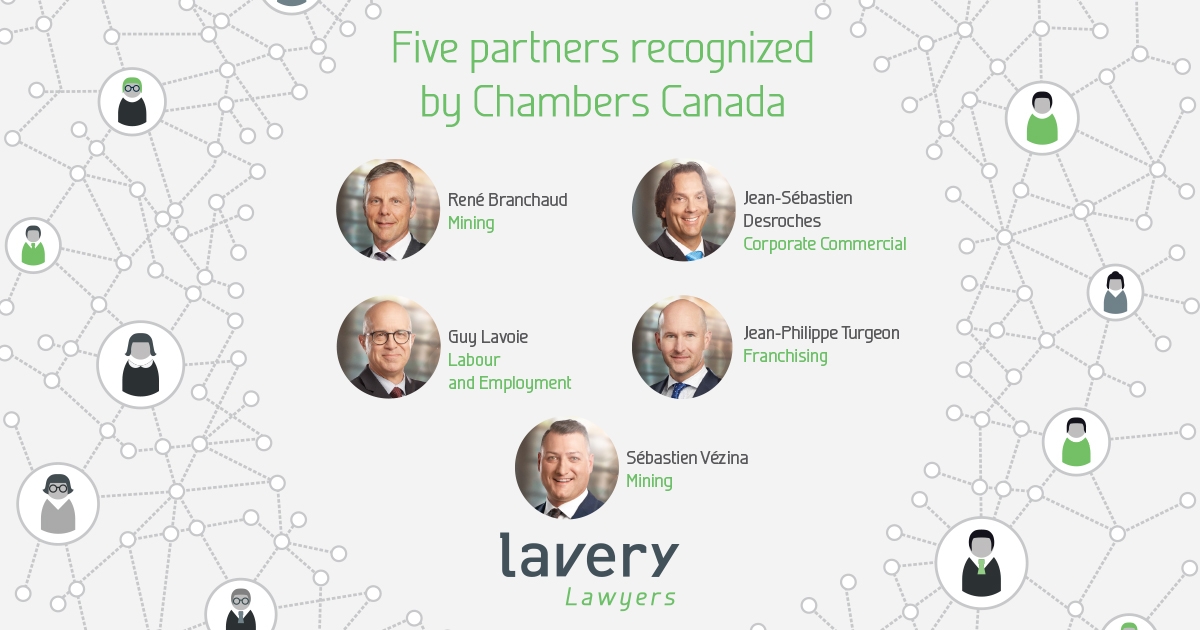 René BranchaudJean-Sébastien DesrochesGuy Lavoie, Jean-Philippe Turgeon and Sébastien Vézina have been recognized as leaders in their respective areas of practice in the 2020 edition of the Chambers Canada guide.