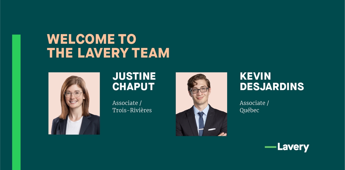 Lavery is pleased to welcome two new members to its Trois-Rivières and Québec offices