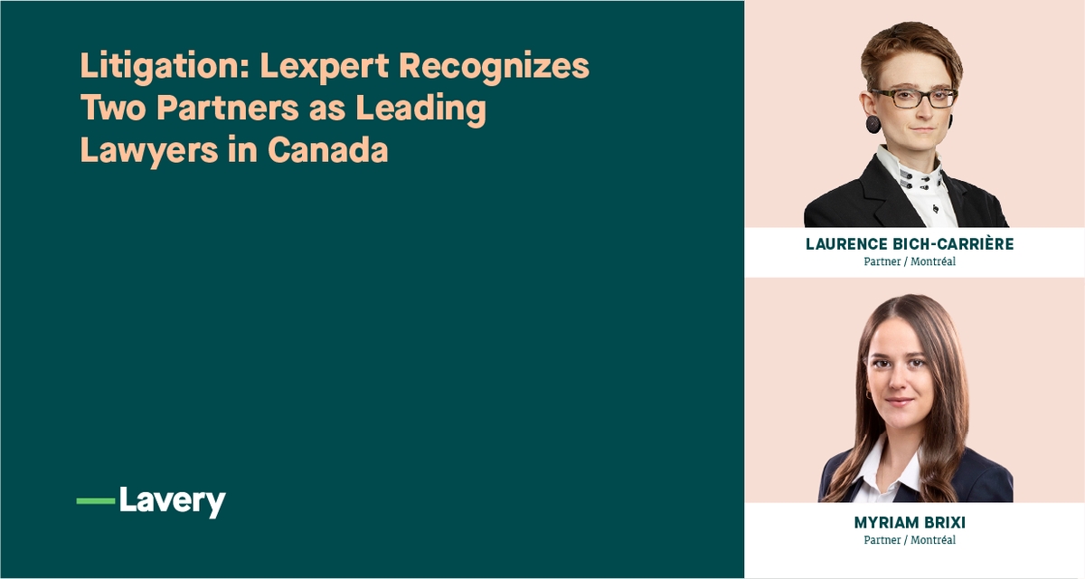 Lavery is proud to announce that Lexpert recognized the expertise of two of our partners in its 2022 Lexpert Special Edition: Litigation.