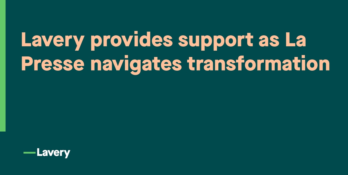 Lavery had the privilege of helping La Presse reorganize its corporate structure, so it could meet all the criteria for the designation and enjoy advantages such as tax-exempt status and the ability to issue donation receipts.