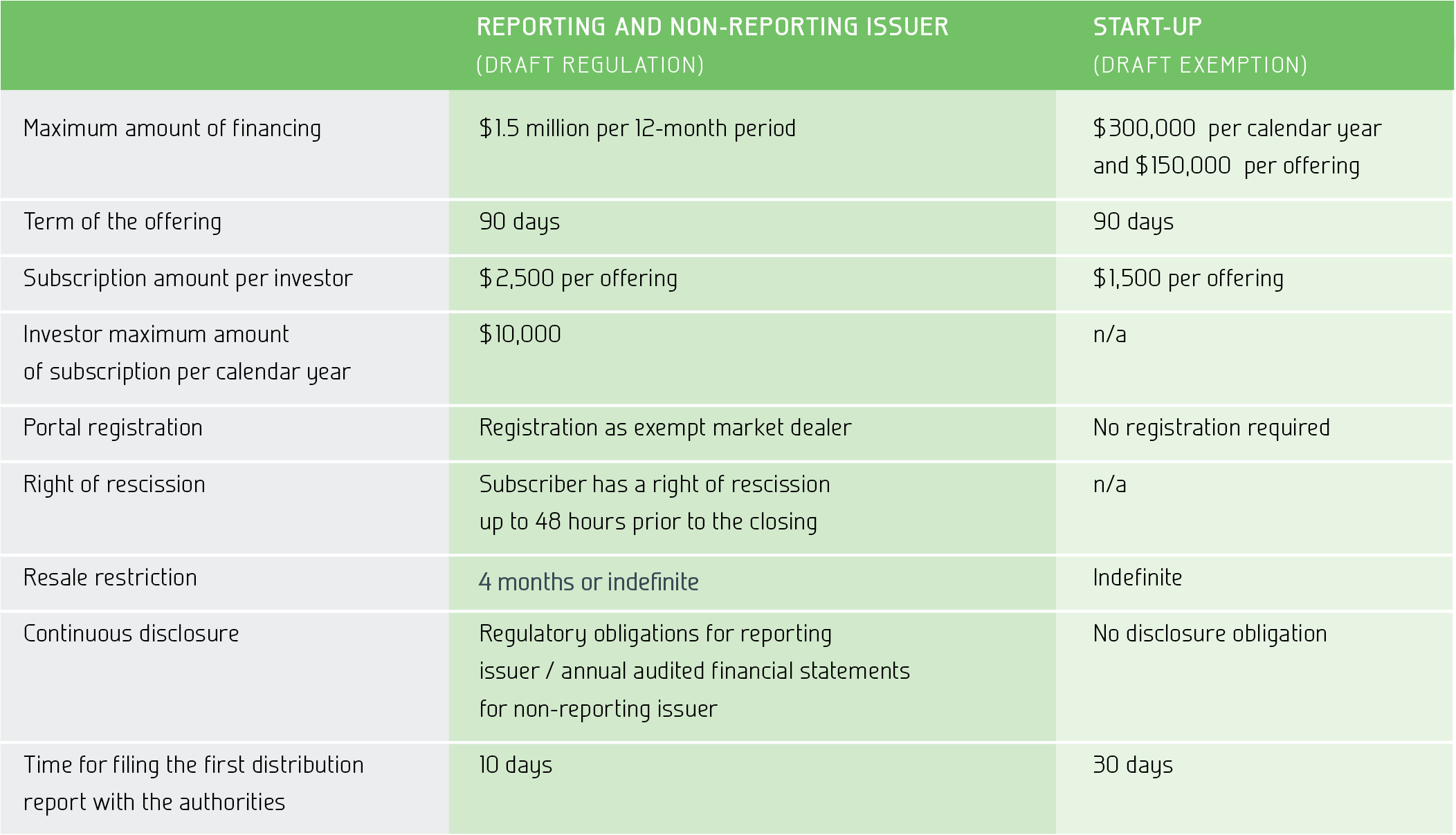 For the purpose of facilitating such fundraising, in the Draft Regulation and Draft Exemption, Participating Jurisdictions propose two offering schemes the first one, available to reporting issuers and non-reporting issuers and the second one, available to start-ups (which are necessarily non-reporting issuers). The rules governing crowdfunding by these two classes of issuers would be somewhat different. The rules applicable to start-ups will be less stringent than those applicable to reporting issuers and non-reporting issuers. The concept of start-up is not defined in the proposed rules.