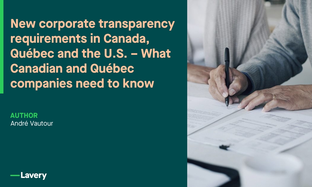 Providing greater transparency in the control of Canadian businesses is a continuing process, and additional provisions that apply to federal business corporations came into force on January 22, 2024, and others, applicable to businesses registered with the REQ, will come into force on July 31, 2024. The provisions of the Corporate Transparency Act of the United States requiring companies to report beneficial ownership information came into force on January 1, 2024; some of these provisions are of interest for Canadian companies.