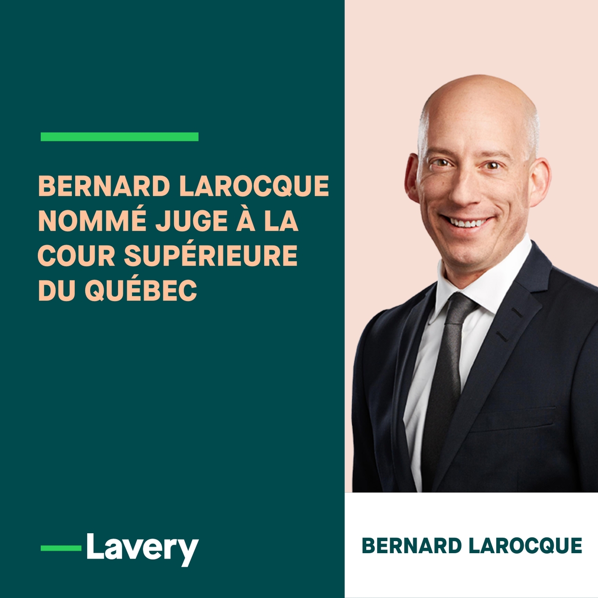 « Bernard rejoint à la magistrature plusieurs de ses anciens collègues et amis du cabinet. Il incarne parfaitement les valeurs de Lavery, animé par l'excellence et la rigueur, un sens profond du devoir et un désir de redonner à la société. Des qualités qui le suivront dans cette prochaine étape importante de sa carrière juridique », conclut Anik Trudel, cheffe de la direction chez Lavery.