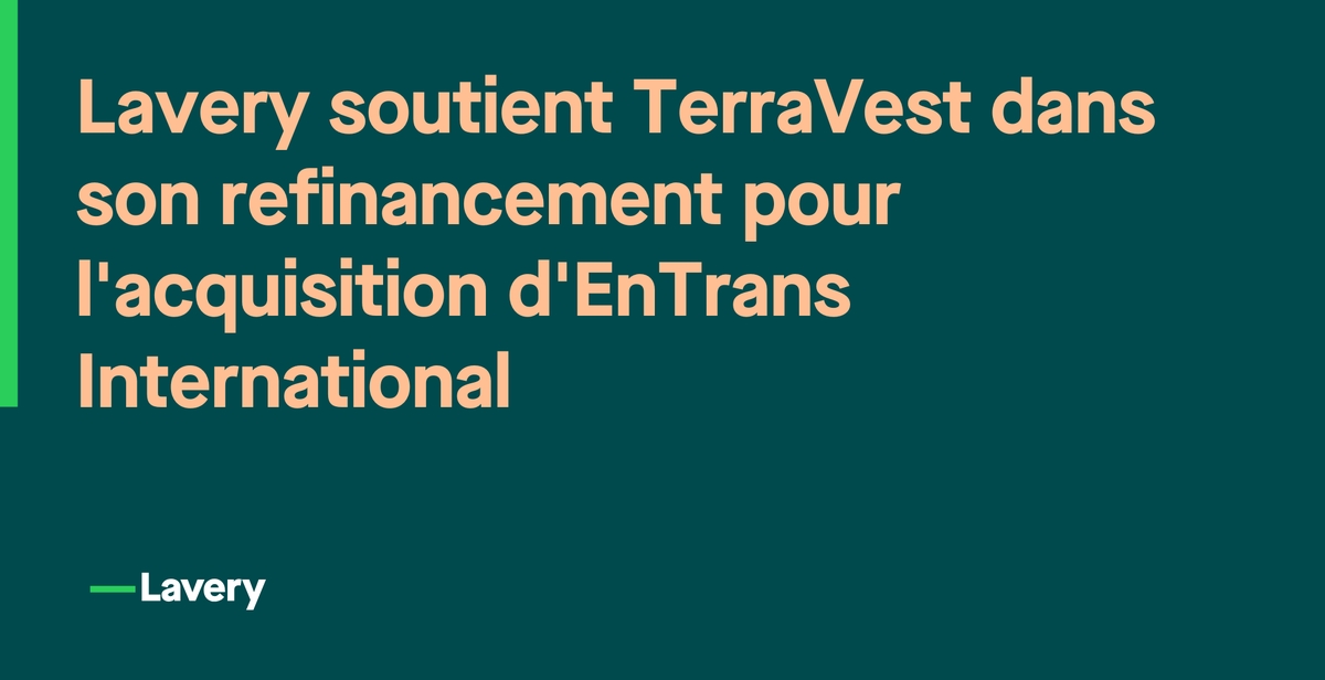 Lavery a joué un rôle clé en conseillant TerraVest sur les aspects de financement de cette transaction. L'équipe de Lavery, dirigée par Brigitte Gauthier et comprenant Bernard Trang, Francis Sabourin, Annie Groleau, Ana Cristina Nascimento, Jessy Ménard, Arielle Supino et Yanick Vlasak, a travaillé de concert avec TerraVest pour structurer la facilité de crédit modifiée. Cette intervention a permis à TerraVest de sécuriser les fonds nécessaires à l'acquisition d'EnTrans International, consolidant ainsi sa position sur le marché nord-américain.