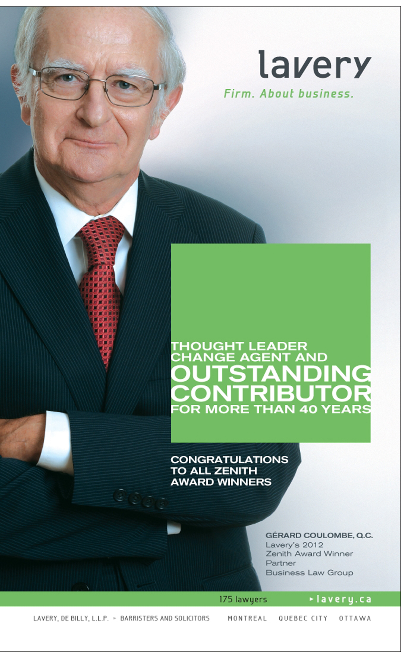 Cette annonce est parue dans une édition spéciale de Lexpert consacrée aux Zenith Awards 2012.