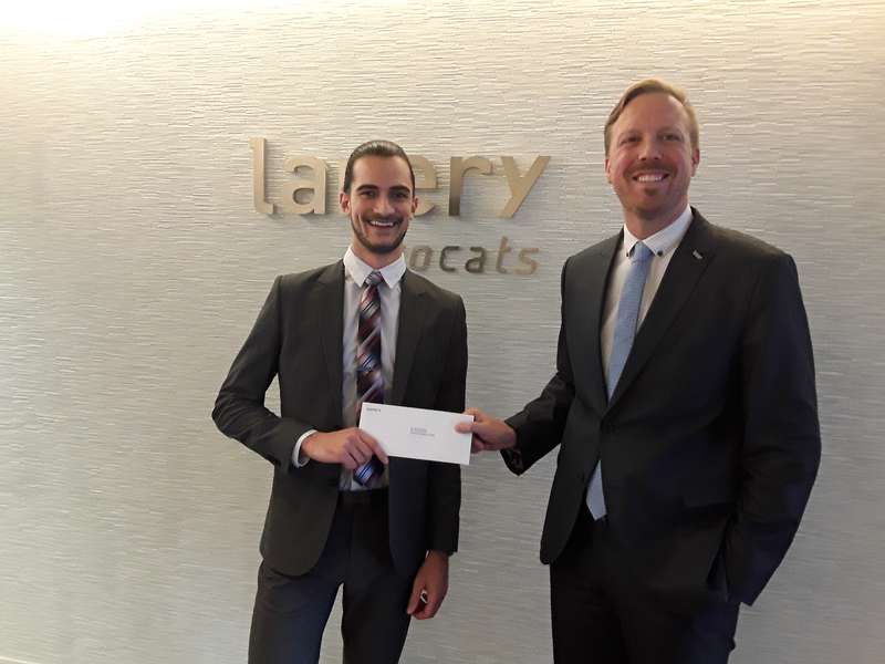 Le 6 et 8 novembre, Loïc Berdnikoff, directeur du développement professionnel a remis une bourse Lavery à deux étudiants en droit de l’Université de Montréal.