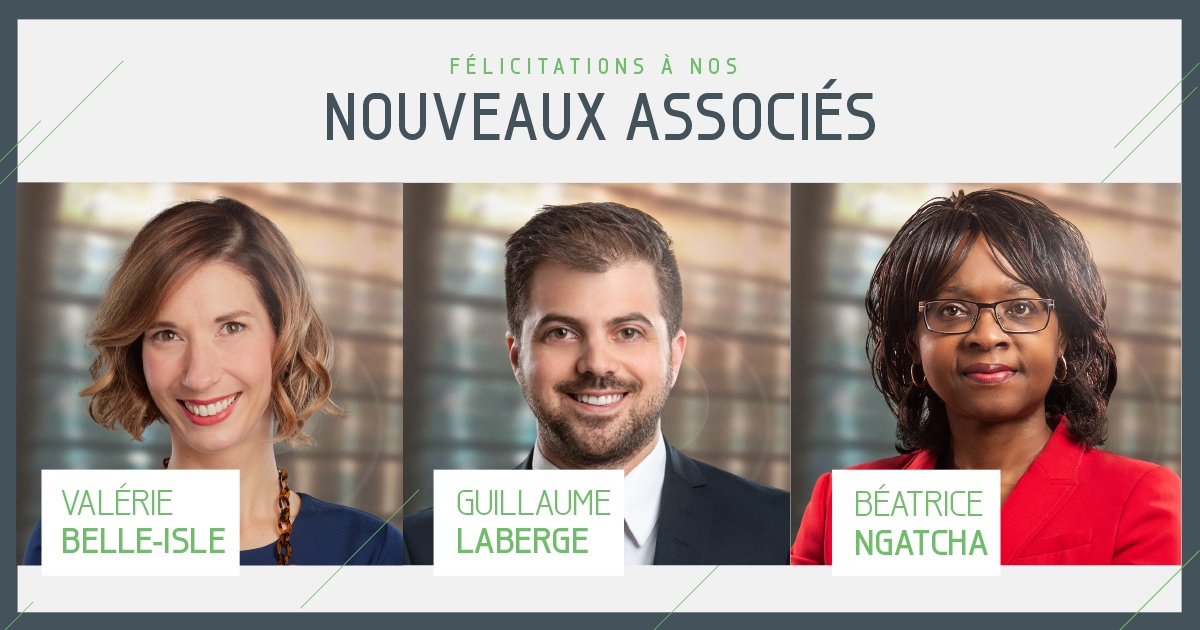 Lavery est heureux d’annoncer les nominations de Valérie Belle-Isle, Guillaume Laberge et Béatrice Ngatcha à titre d'associés du cabinet.