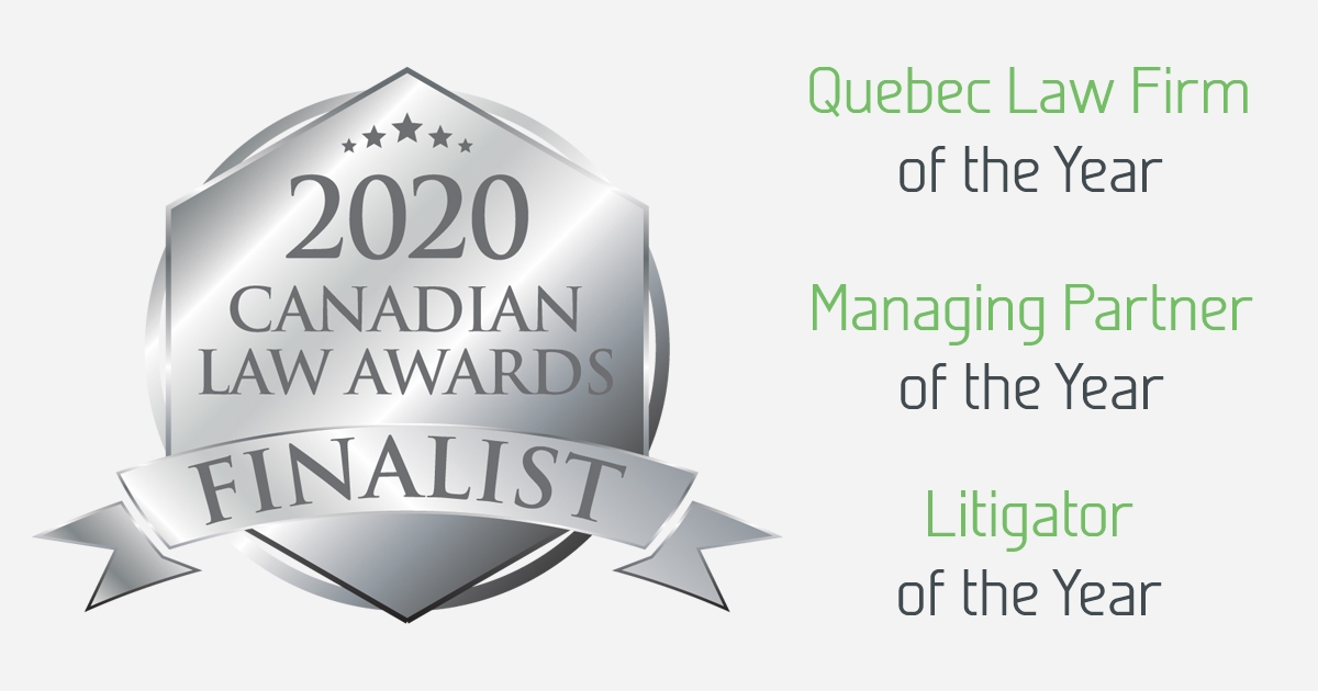 C’est pour nous un honneur d’être finaliste dans trois catégories de la première édition du Canadian Law Awards de Lexpert.