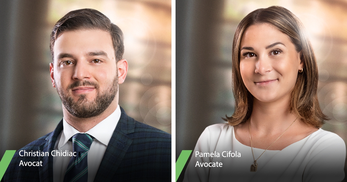 Lavery est heureux d’accueillir deux nouveaux membres au sein du bureau de Montréal et du groupe Droit des affaires : Christian Chidiac et Pamela Cifola.