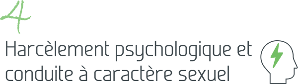 - Harcèlement psychologique incluant les conduites à caractère sexuel
